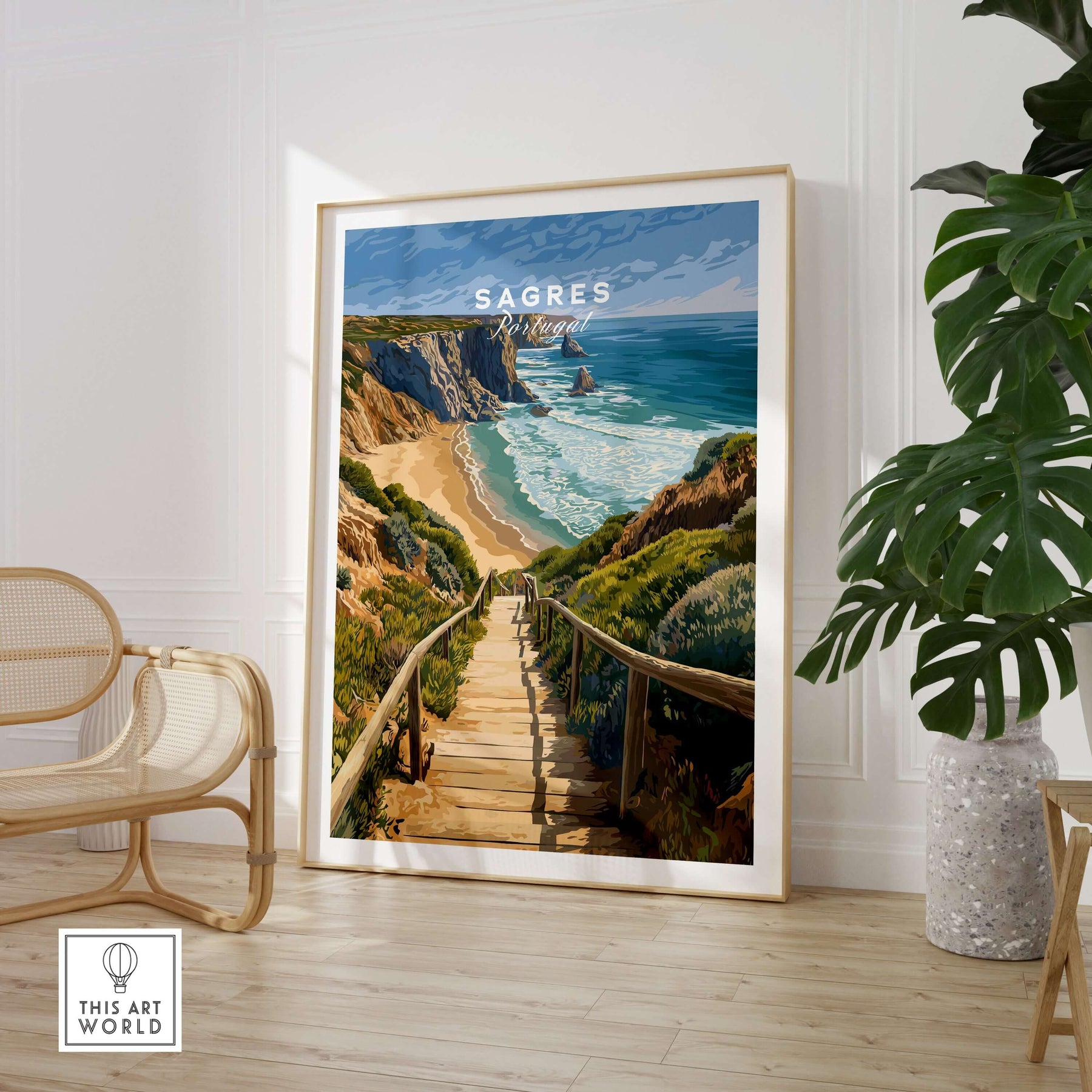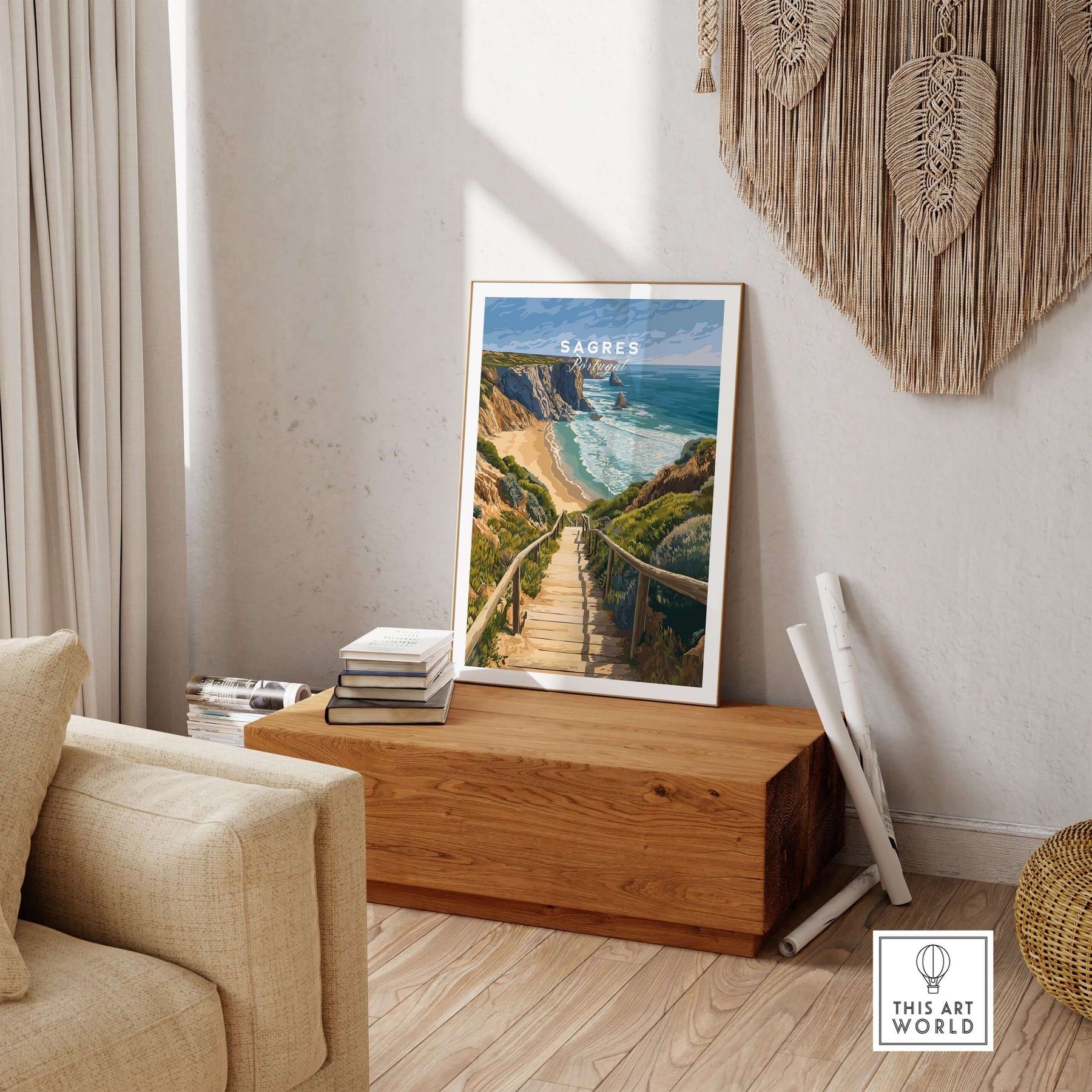 Sagres Algarve Cliffs Beach Print | Portugual Travel Wall Art displayed in a stylish interior setting.