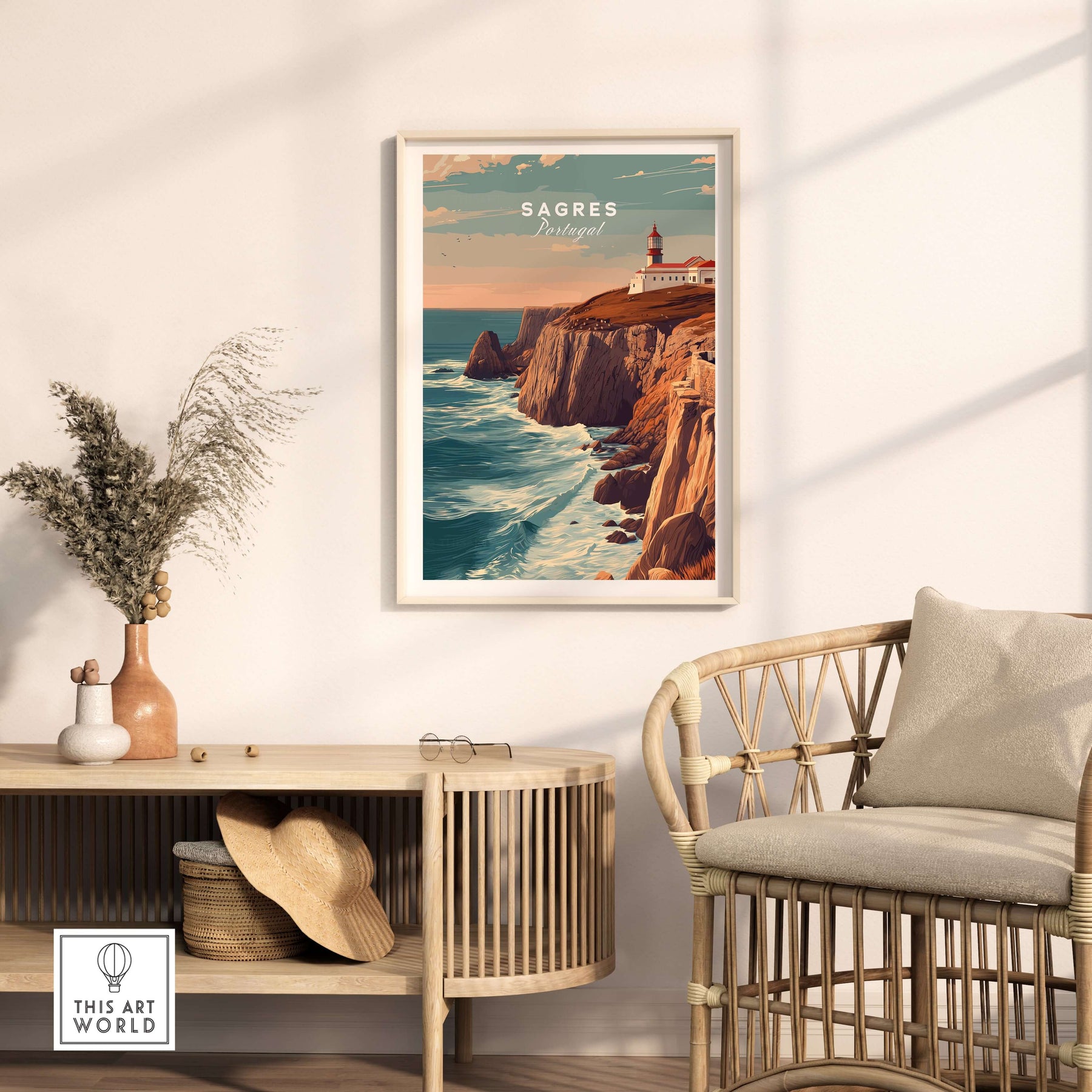 Sagres Poster - Wild Algarve Coastline View Print displayed in a stylish living space with modern decor.