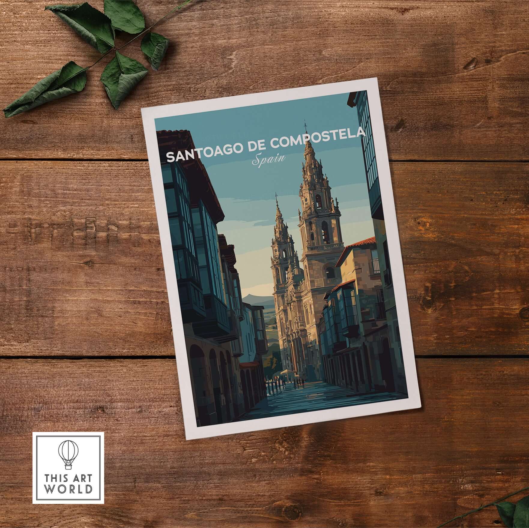 Santiago de Compostela Galician Old Town Architecture Print | Camino Wall Decor displayed among other city posters
