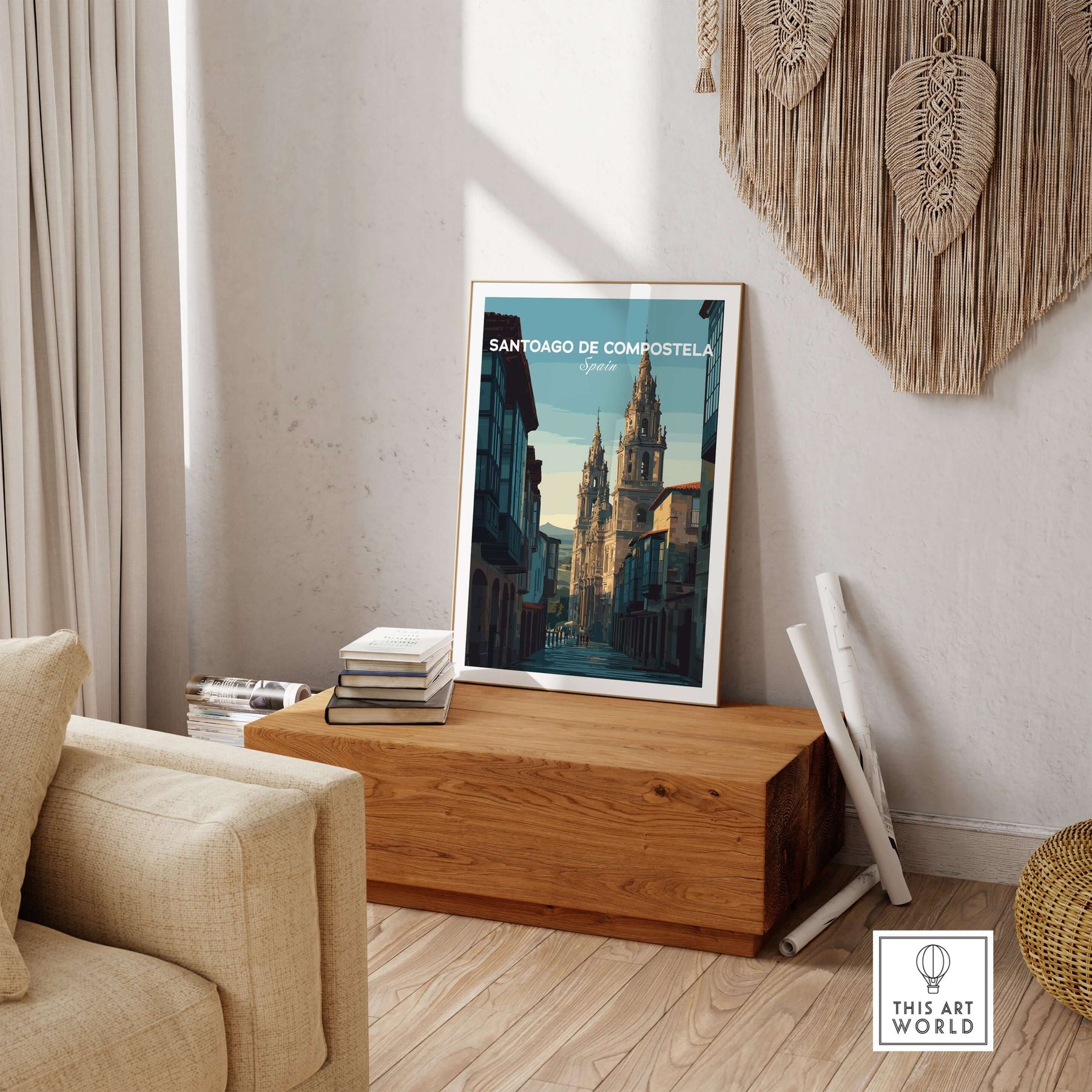 Santiago de Compostela Galician Old Town Architecture Print | Camino Wall Decor showcased in a stylish interior setting.