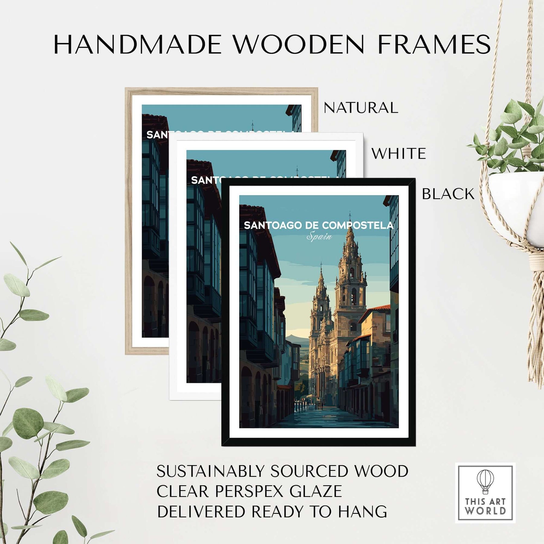 Handmade wooden frames for Santiago de Compostela Galician Old Town Architecture Print | Camino Wall Decor.