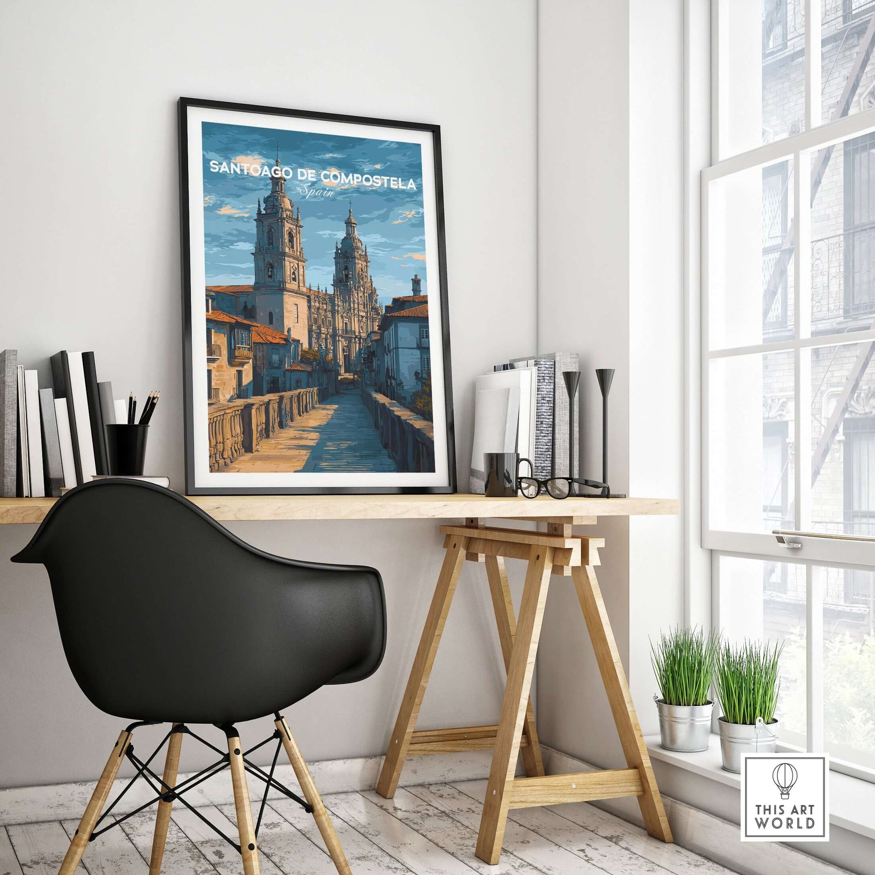 Santiago de Compostela Spain Print | Camino Wall Decor showcasing iconic architecture in a stylish home setting.