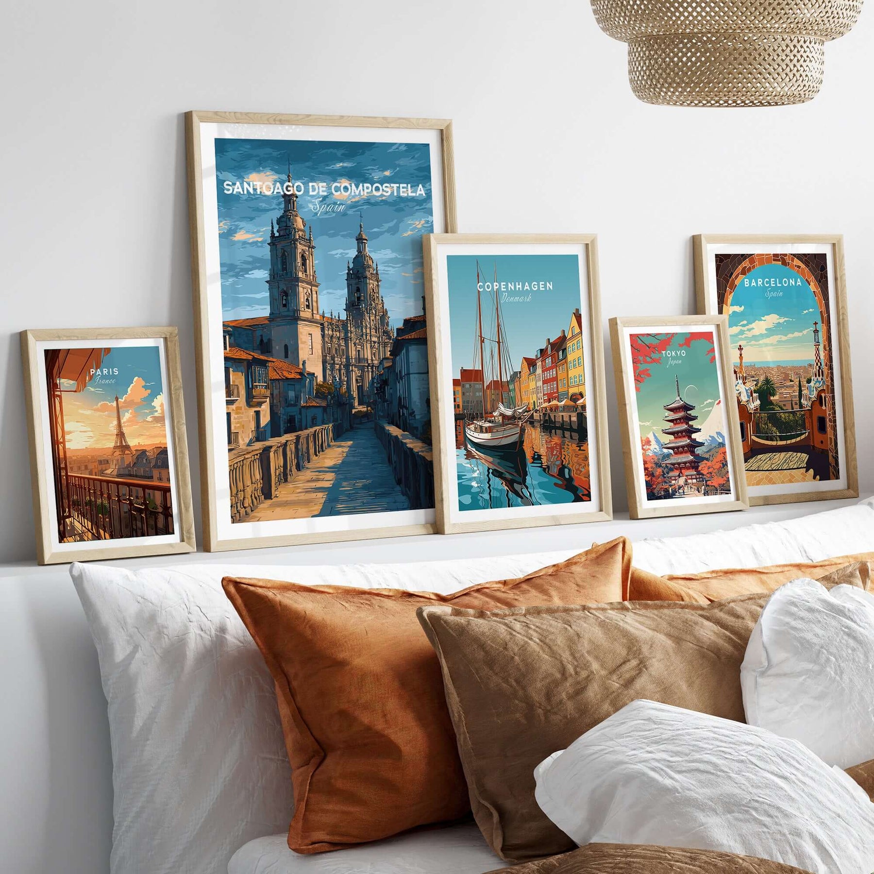 Santiago de Compostela Spain Print | Camino Wall Decor displayed in a cozy interior with beautiful architecture view.