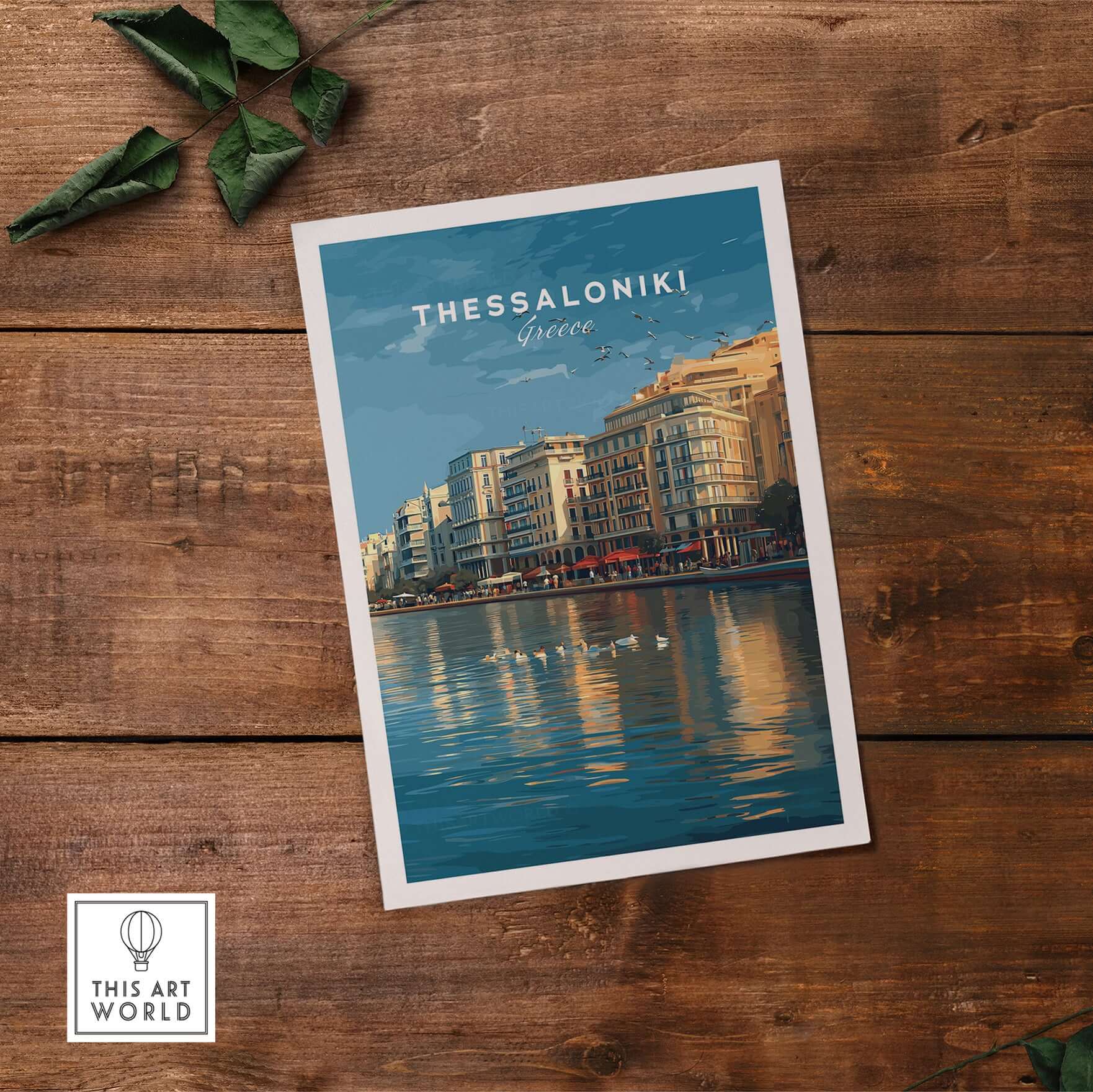 Thessaloniki Print | Greek City Wall Decor showcasing vibrant shoreline and historic buildings