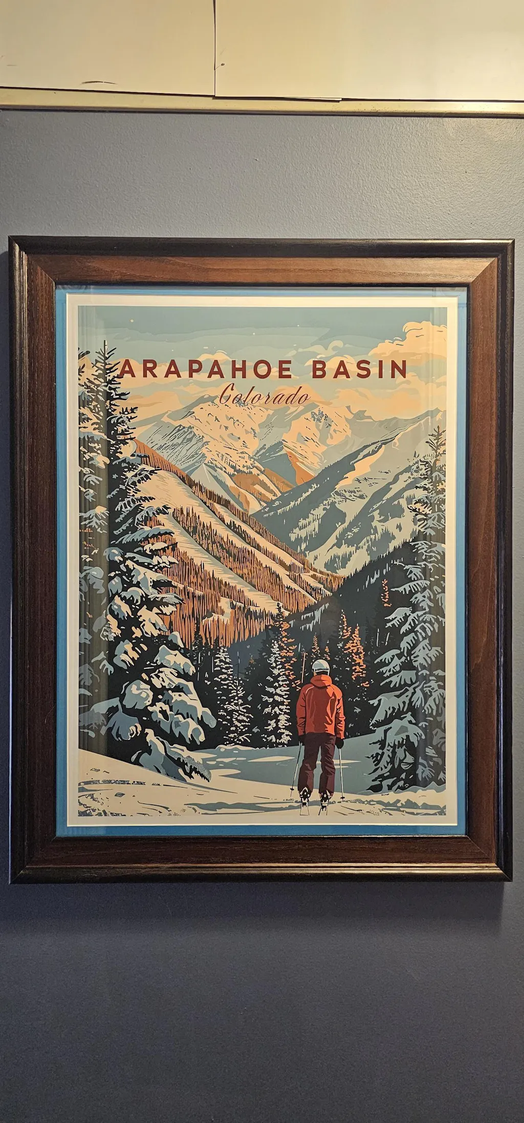 Person assembling handmade wooden frame for Zion National Park art print on worktable