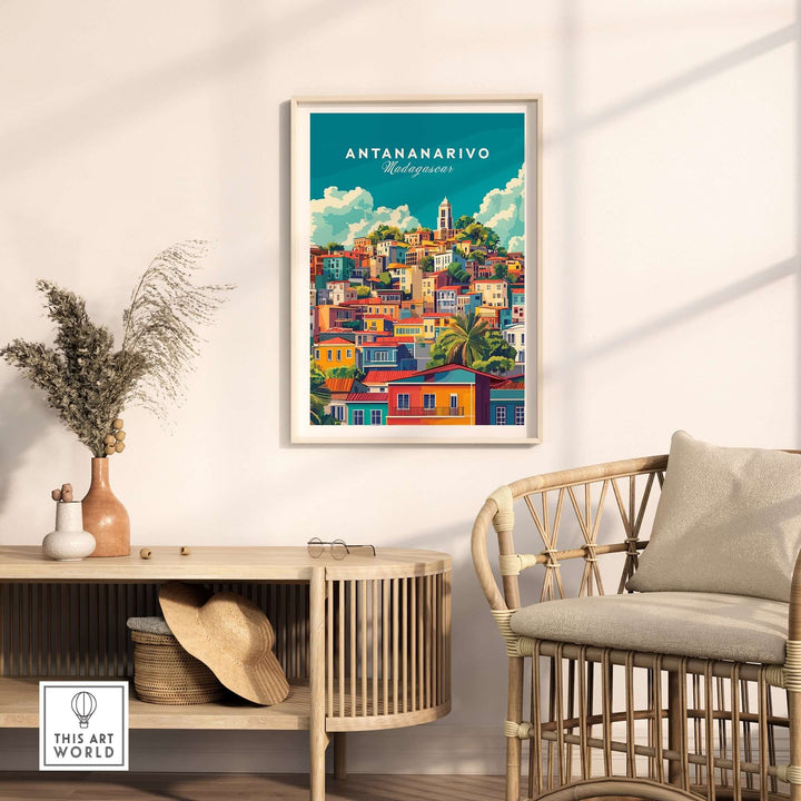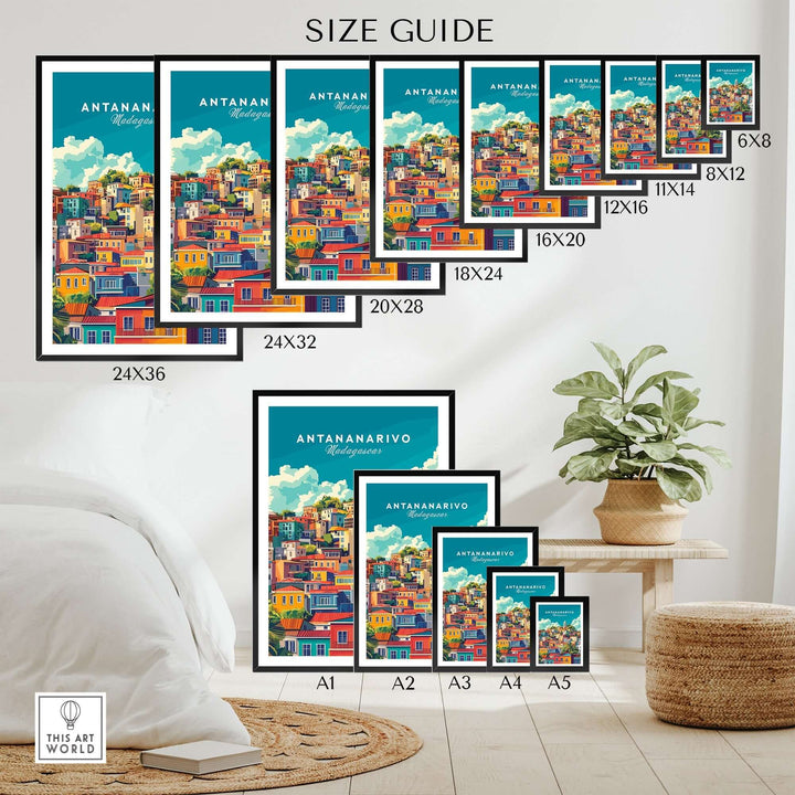 Découvrez la ville animée et colorée d'Antananarivo à travers notre superbe affiche de voyage ! Ajoutez une touche de culture à votre décoration intérieure et laissez votre imagination vous emmener dans une aventure. Parfait pour tous ceux qui aiment explorer de nouveaux endroits et apprécient l'art. Commandez maintenant et laissez votre envie de voyager vous guider !