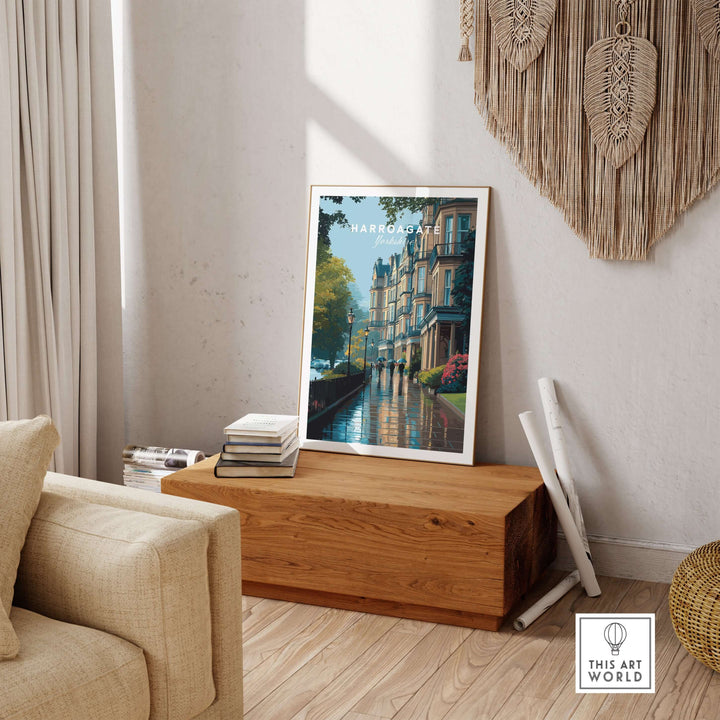 Harrogate Classic British Town Scene Print | English Architecture Wall Art showcased in a stylish interior setting.