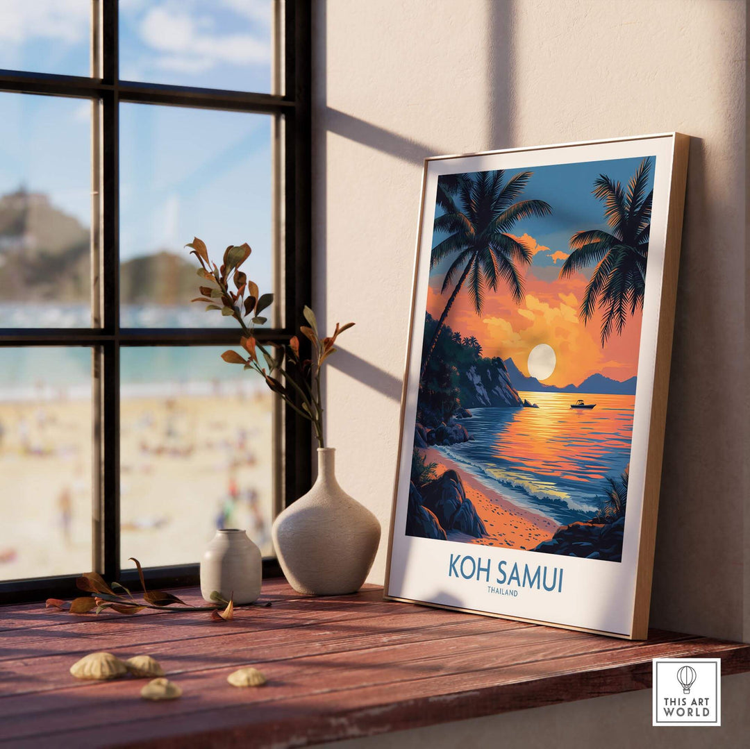 Découvrez la beauté de Koh Samui avec notre affiche de voyage en Thaïlande ! Présentant des paysages époustouflants et des couleurs vibrantes, cette affiche est le complément parfait à la collection de tout amateur de voyages. Accrochez-la chez vous ou au bureau et laissez-vous inspirer pour votre prochaine aventure vers cette destination à couper le souffle.