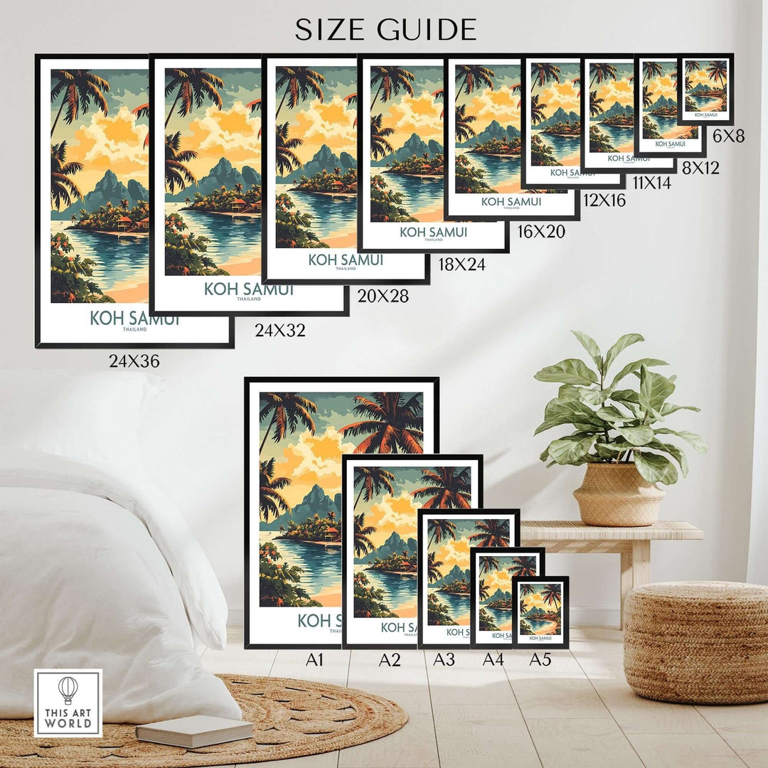 Découvrez la beauté de Koh Samui avec notre superbe affiche de voyage ! Dotée de couleurs vives et de détails exquis, cette affiche vous transportera vers les plages immaculées et les paysages luxuriants de ce paradis tropical. Accrochez-la à votre mur et laissez votre imagination vagabonder vers votre prochaine destination de vacances.