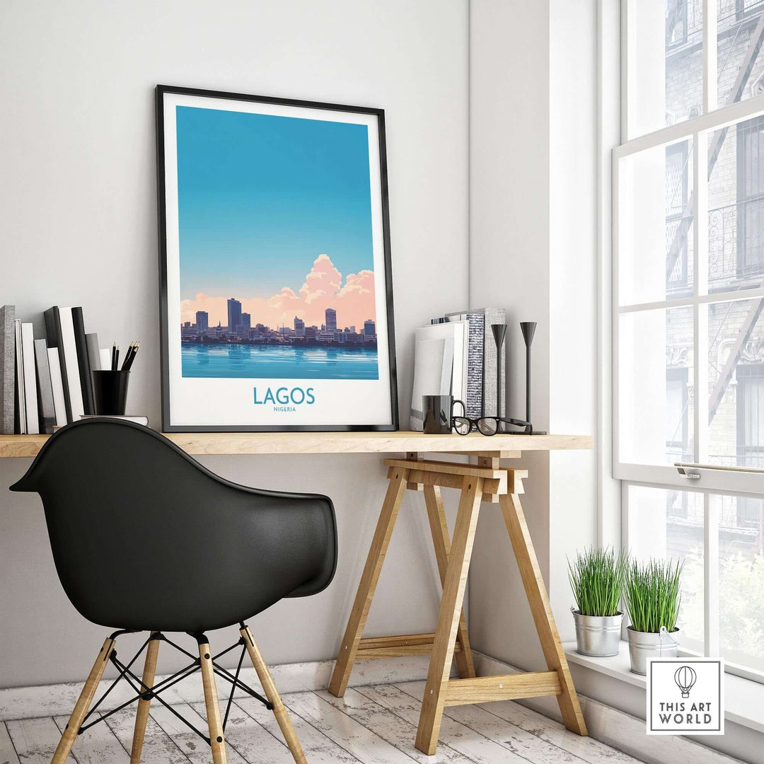 Découvrez l'énergie vibrante de Lagos avec notre Lagos Print Nigeria ! Cette superbe impression de skyline de la ville est sûre d'inspirer et d'évoquer un sentiment d'envie de voyager. Parfait pour ajouter une touche de culture à n'importe quel espace. Commandez maintenant et apportez la beauté du Nigéria chez vous !