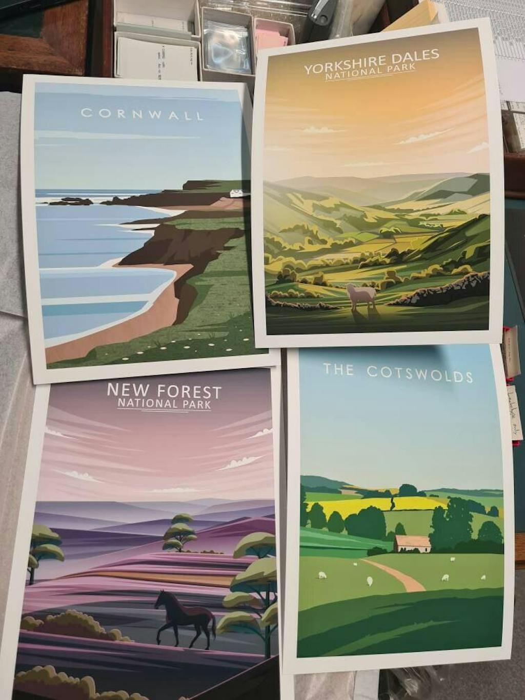 New Forest poster art displayed in a stylish indoor setting, showcasing minimalist national park design.